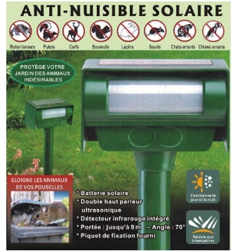 SOLAR ULTRASONIC POWERED ANIMAL REPELLER